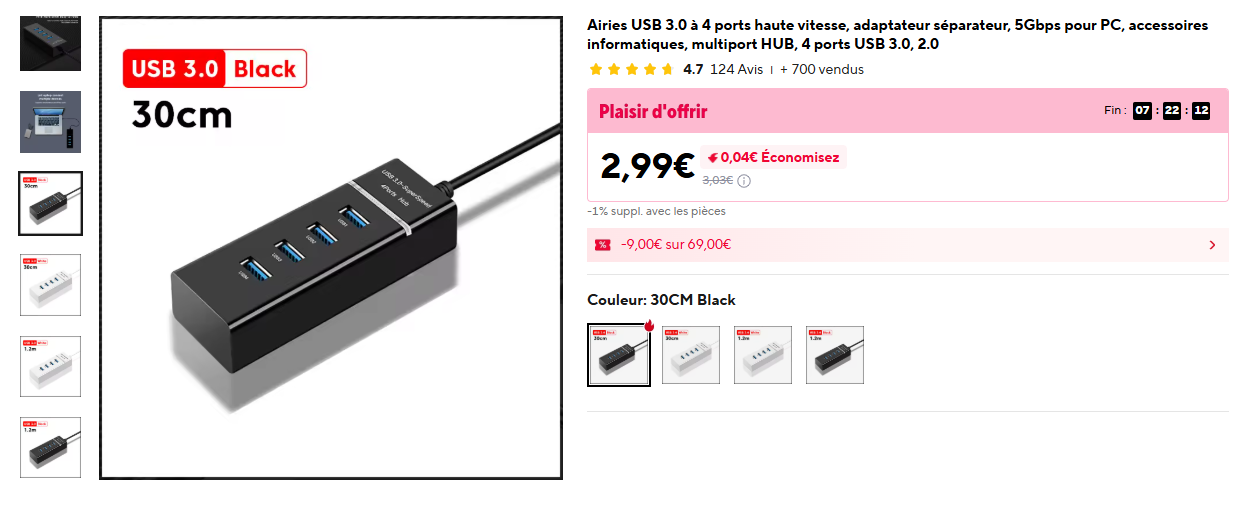 Il existe énormément d’annonces qui présente cette “particularité”, prenons en exemple cette annonce AliExpress :
