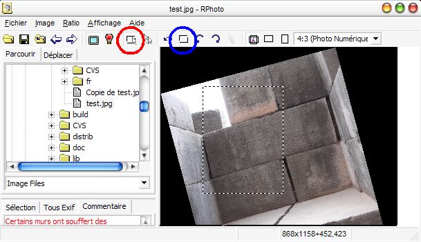 - Rotate the image by using the toolbar, or shortcutr "Return") ; please wait a few seconds to let the picture be rotated.