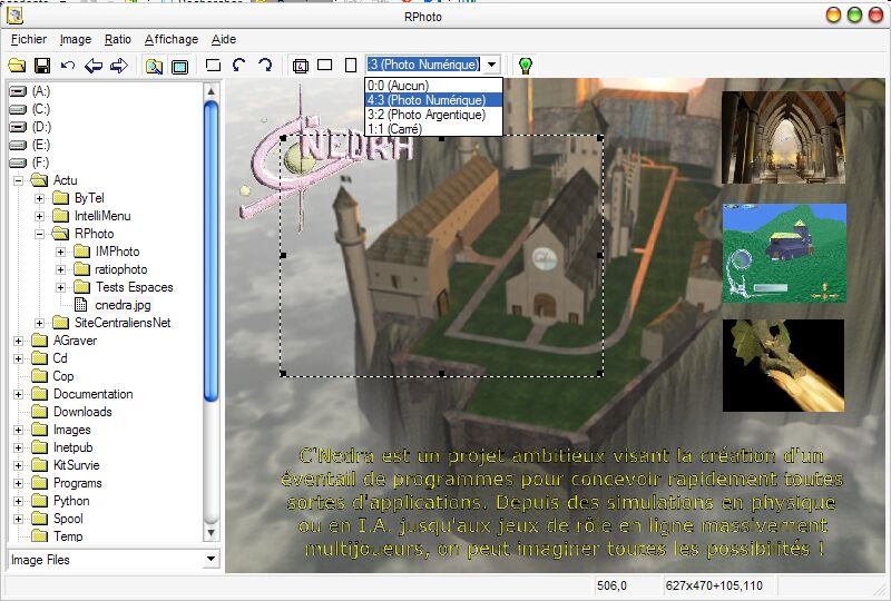 RPhoto est un logiciel libre et léger pour retraiter ses photos numériques. Il a été créé du manque de logiciel capable de recadrer des photos en conservant un ratio longueur/largeur pour éviter les bords blancs à l’impression. Disponible pour Windows & Linux.